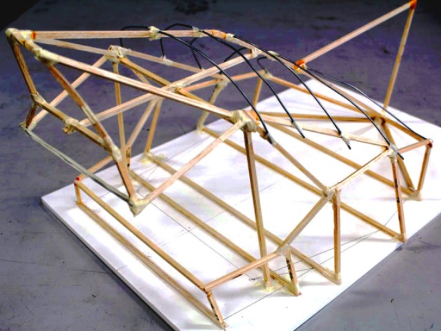 大学生のデザインを元に、西蒲区の業者にお願いして骨組みの作成をおこないます。