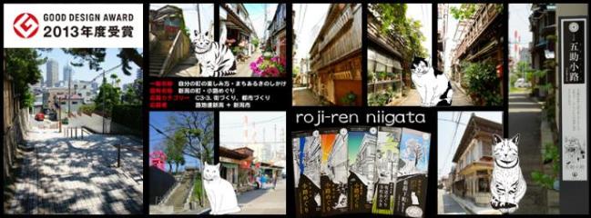 2013年10月1日、市民団体の路地連新潟(ろじれんにいがた)と新潟市は、連名で公益財団法人日本デザイン振興会が主催する「2013年度グッドデザイン賞」を受賞しました!これは、「何気ないまちの魅力に気づくことで、住んでいるまちへの関心と自信を高めたい」という市民の活動に行政が参加して構築したまち歩きのしかけです。中央区の古町・本町界隈の小路の見どころを紹介するマップの制作や、案内板の設置、スタンプラリーの開催など、まち歩きを通じて普段は見落としがちなまちの魅力に触れてもらおうと、平成18年度から行っている取組みが評価されたものです。