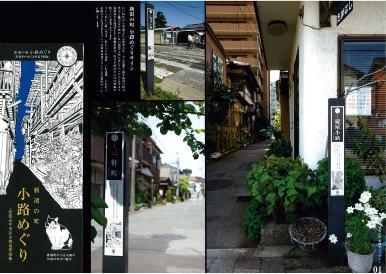 新潟市では、みなとまち新潟の歴史文化を「新潟のお宝」として、市民の皆さんに広く知って頂き、実際に楽しく巡って歩けるよう、「小路解説板」や「お宝解説板」を設置し、6種類のまち歩きマップ「小路めぐり(3種類)」「下町あるき」「坂道めぐり 寺町あるき」「つなぐ町 流作場あるき」を作成しました。