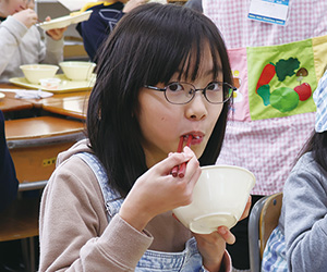 子どもたちに秋葉区産の農産物のおいしさを知ってもらうために、12月から2月の給食で、さといも、プチヴェール®︎、もち麦を使用したメニューが提供されています。