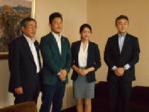 進出報告会(左から新潟県佐久間副知事、遠山代表取締役、経営企画室黒岩氏、新潟市高橋副市長)