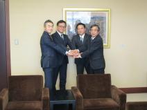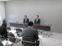進出報告会(左から新潟市高橋副市長、篠原代表取締役社長、増田QAサポート部GM、新潟県佐久間副知事)