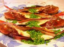 ホウボウは新潟では「きみよ」と呼ばれます。緑に赤い斑点の入る大きな鰭と赤い地に細かな緑の入る美しい姿。透き通るようなしっかりとした美しい白身で、味の良さも抜群です。