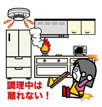 - こんろ使用中にその場から離れる時は必ず火を消す。