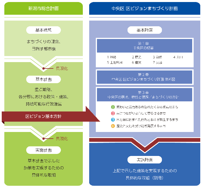 中央区の将来像や目指す方向などを示すもので、新潟市総合計画の「基本計画」の一部として、中央区自治協議会で検討・審議をし、新潟市議会の議決を経て策定しました。