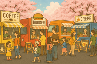 毎年、江南区の桜の名所「すごぼり」で桜まつりが行われます。今年は、ライトアップ期間にあわせて、キッチンカーが並ぶ楽しいマルシェを開催します。美味しいフードやドリンクを片手に、ゆっくりと桜を楽しんでみませんか。ご家族やお友だちと、ぜひ気軽にお立ち寄りください。