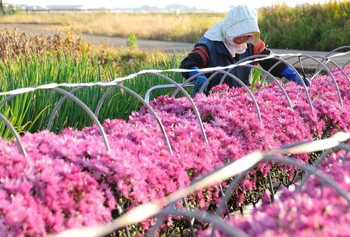 南区の名物、食用菊畑の日常的な作業をストレートに撮影している。画面構成が上手く計算されて菊の鮮やかさがさらに強調されている。とても安定感のある、伝わる写真に仕上がっています。