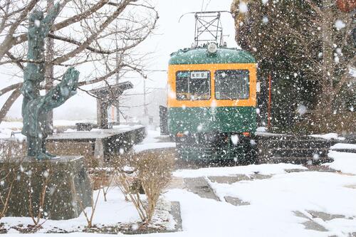 春から秋のかぼちゃ電車は幾度となく見ていましたが冬はどんな風景になるのかと思っていたところ、区報で2025年は冬期のシート囲いはしない事を知りました。