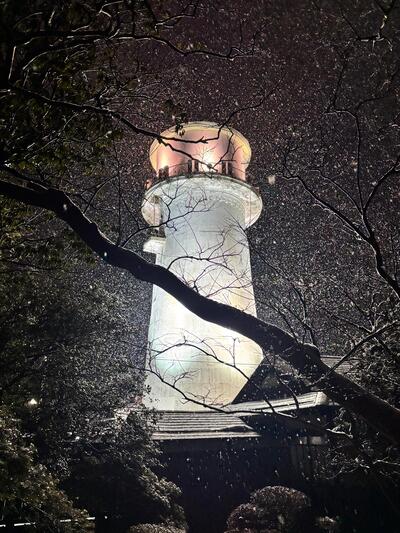 大晦日の白根庭園から見慣れた配水塔が雪と光でとても綺麗に見えた、心に残る忘れられない夜でした。