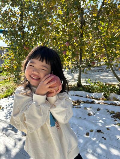 背が伸びて今年は自分で収穫できました。娘の成長をこうした形で思い出に残すことができて嬉しいです!