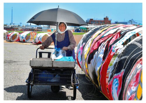 早起きは三文の得、この日も地元のおばあさんがリヤカーを押しながら大凧に近づいてきました。
