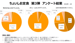 「ちょいしお定食」を提供した日は、メニュー表を作成し、減塩の工夫を感じてもらうほか、味付けやボリュームに関するアンケートに協力してもらい、次回提供時の改善に活かしています。