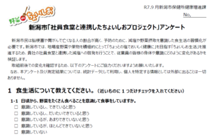 また、本市における健康づくりの方針をまとめた「スマイル新潟ヘルスプラン」の基本方針の一つに「企業・団体等と連携した健康増進の推進」を掲げていることから、令和7年度より働く世代を対象とした食環境整備として、社員食堂のある事業所と連携した「ちょいしおプロジェクト」を進めています。
