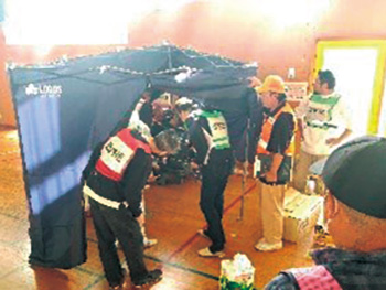 地域住民を中心に、施設管理者、行政職員の3者が協力して避難所運営を行う組織で、平時から避難所のレイアウトや生活ルールを検討します。