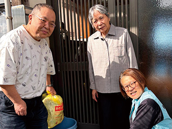 「ごみ出しに困っている高齢者がいる」と地域の方から相談を受け、2つの福祉事業所(曽野木:あおぞらポコレーション、両川:スワン)が自治会、民生委員と協力し、週4回ごみ出し支援を行っています。現在、24人の方が利用しています。