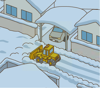 除雪車が通過した後、家の前に雪が残り、出入り口をふさぐことがあります。自宅前の除雪は皆さんで行ってください。