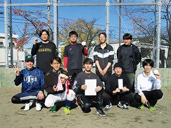 11月16日、かわね公園グラウンドで同大会が開催されました。秋晴れの下、江南区内の事業所などから参加した4チームが熱戦を繰り広げ、「カマーズ鮮」(佐文工業所)が優勝しました。