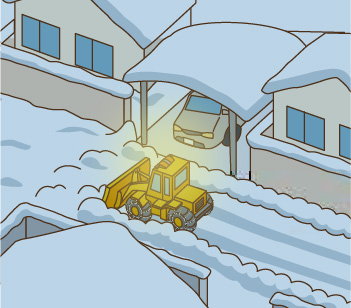 除雪車が通過した後、家の前に雪が残り、出入り口をふさぐことがあります。自宅前の除雪は皆さんで行ってください。