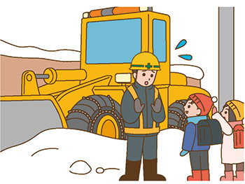 除雪車に近づいたり作業員に話しかけることは危険です。スムーズな作業の妨げにもなるため、絶対にやめてください。