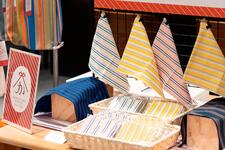 また、鳥居のようなリボンでできた入り口は亀田縞の魅力を体感し日常に取り入れるきっかけになるように、という意味も込めています。