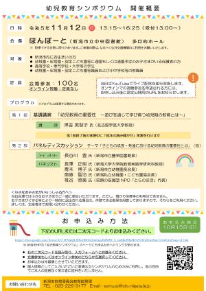 - 11月は新潟県の「教育月間」です。11月18日と19日には、新潟青陵大学にて「日本子育て学会第15回大会」が開催されます。(詳しくは、