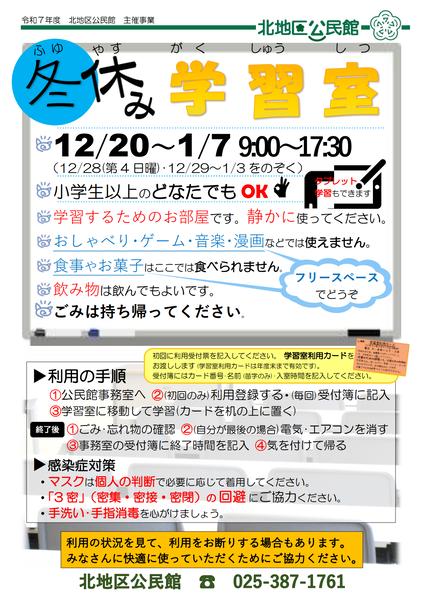 | お問い合わせ | 北地区公民館 電話:025-387-1761 |