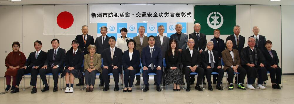 新潟市では、防犯活動により安心・安全なまちづくりに寄与したと認められる個人及び団体並びに、交通安全活動を積極的に推進し交通事故防止に貢献している個人及び団体に対し、その功労に報いるため感謝状を贈呈しています。