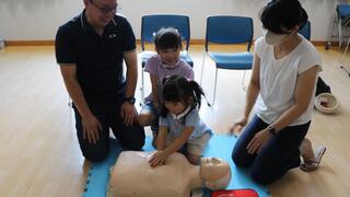 職員指導のもとAED体験ができます。やったことがあるのとないのでは、いざという時にできることが全く違います。もしもの時に備え、ぜひ体験してください。