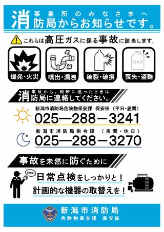 これは高圧ガスの保安に関する活動の促進、高圧ガスによる災害を防止及び公共の安全を確保することを目的として全国一斉に展開されます。