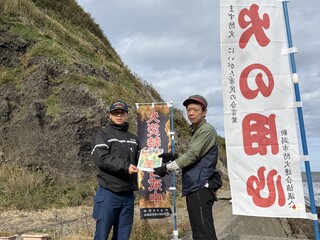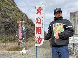 西蒲消防署は、令和7年11月8日(土曜)午前9時から、角田山灯台コース登山道入口で登山者に山火事予防のリーフレットを配布し、火災予防を呼びかけました。