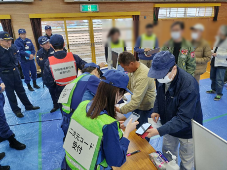 避難所で受付をする長岡市民の様子