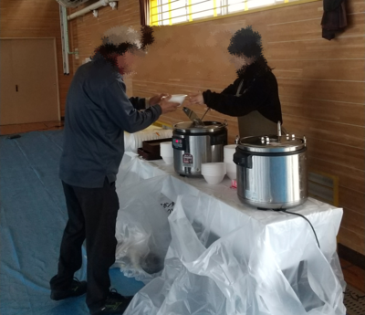 避難所で避難者へ温食を提供する様子
