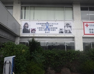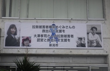 横田めぐみさん、大澤孝司さんたちの北朝鮮拉致事件の全容解明と全面解決を願う横看板や懸垂幕を市役所本庁舎や西蒲区役所庁舎に掲げています。