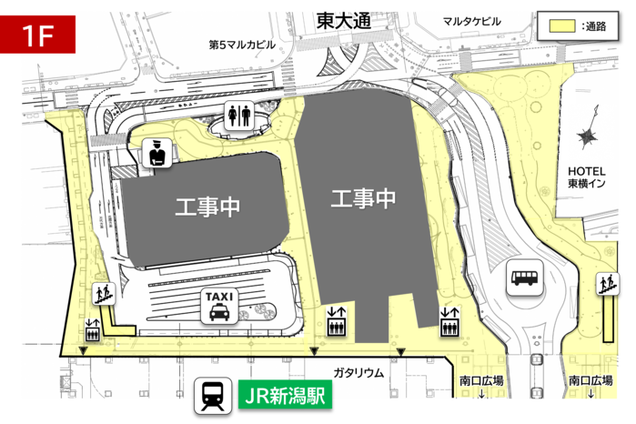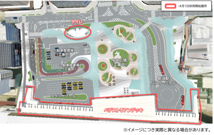 【新潟駅万代広場】トイレ・ペデストリアンデッキの供用開始について