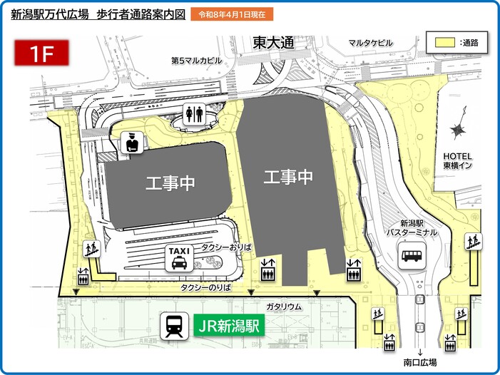 新潟駅万代広場 歩行者通路のご案内(令和8年4月1日現在)