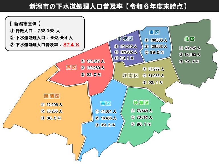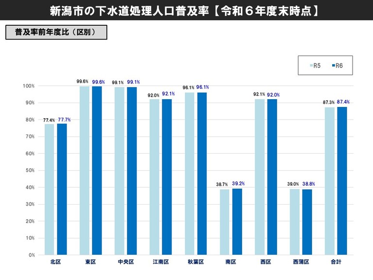 令和6年度末新潟市下水道処理人口普及率は、87.4%となりました。