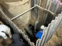 道路陥没について調査を実施した結果、下水道管路の損傷が原因であることを確認しました。この結果を受け、損傷した下水道管路及び道路の補修に着手し応急措置を実施しました。