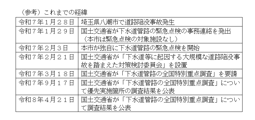 また、内径2メートル以上かつ整備後25年以上経過した下水道管路(約3.2km)を対象に「本市独自の緊急点検」を実施し、空洞の可能性がある22箇所について開削調査を行いましたので、その結果をお知らせします。