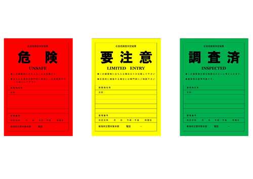 調査済(緑色):建築物の使用や立入を制限するような被害は認められません。