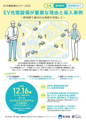 【参加者募集 12月16日開催】EV充電設備セミナー2025 EV充電設備が重要な理由と導入事例~新潟県で選ばれる施設を目指して~