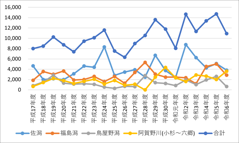 | 令和5年度 | 1 | 7,128 | 記録なし | 15 |