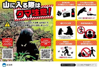 - 以下の「にいがたクマ出没マップ」を確認し、クマの出没があった場所には近づかない。