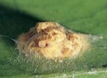 - 葉の裏側などに黄色い毛玉状の卵を密集して産み付けます。