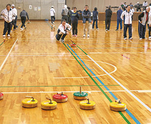 フロアカーリングは子どもから大人まで誰でもすぐに楽しめるニュースポーツです。適度な運動で気軽に健康づくりをしませんか。
