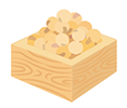 節分で、鬼を退治する豆の話を聞き『大豆』を知った子どもたち。「いつも食べている大豆は、実はこんなに固いんだよ」と触らせてもらうと「うわ~。固いね」「こんなに固いと食べられないよね」とびっくりした様子でした。「大豆がお水をごくごく飲むとやわらかくなるんだよ」と聞き、大豆の不思議に興味津々!大豆は、体にとって大切な栄養がたくさんあること、豆腐やしょうゆ、みそなどいろいろな食べ物に変身することを知り、小さな「大豆博士」になりました。