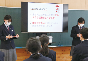 区社会福祉協議会やアクションプラン推進委員の皆さんから支援を受けながら、地域の課題について中学生らしい発想で解決策を提案しました。1月26日には発表会も開催され、生徒たちは自身の声で提案を伝えました。