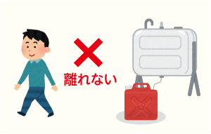 (2) ストーブ・コンロ・たばこなど、火を使用するものの周りには燃えやすいものを置かないようにし、確実に消火する。