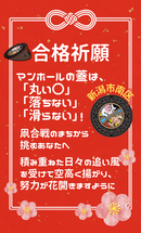 受験生や資格試験に挑戦する人たちを応援するため、南区にある凧合戦専用マンホールをデザインした「お守り」とそこに住む妖怪キャラクター・凧マンホールさんの「ステッカー」を配布いたします。