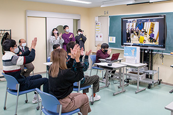 画面を通じて、ジェスチャーゲームやクリスマスにちなんだ「きよしこの夜」の合唱など、約1時間の交流を楽しみました。