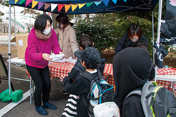 小学校の施設を活用して、子どもたちに安心安全な遊び場を提供するふれあいスクールに合わせ、子ども食堂を運営するさくら食堂が、12月19日に内野小学校で、子どもたちにカレーライスを無料で配布しました。